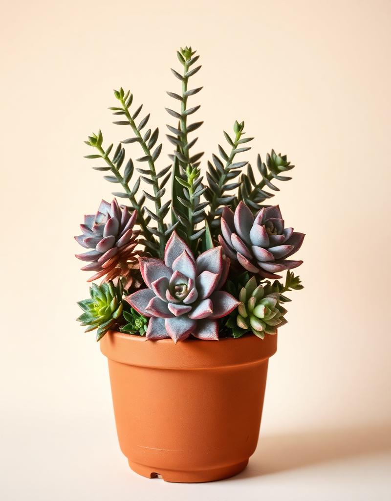 Un mini jardín de suculentas en maceta artesanal. Fácil cuidado, belleza duradera.